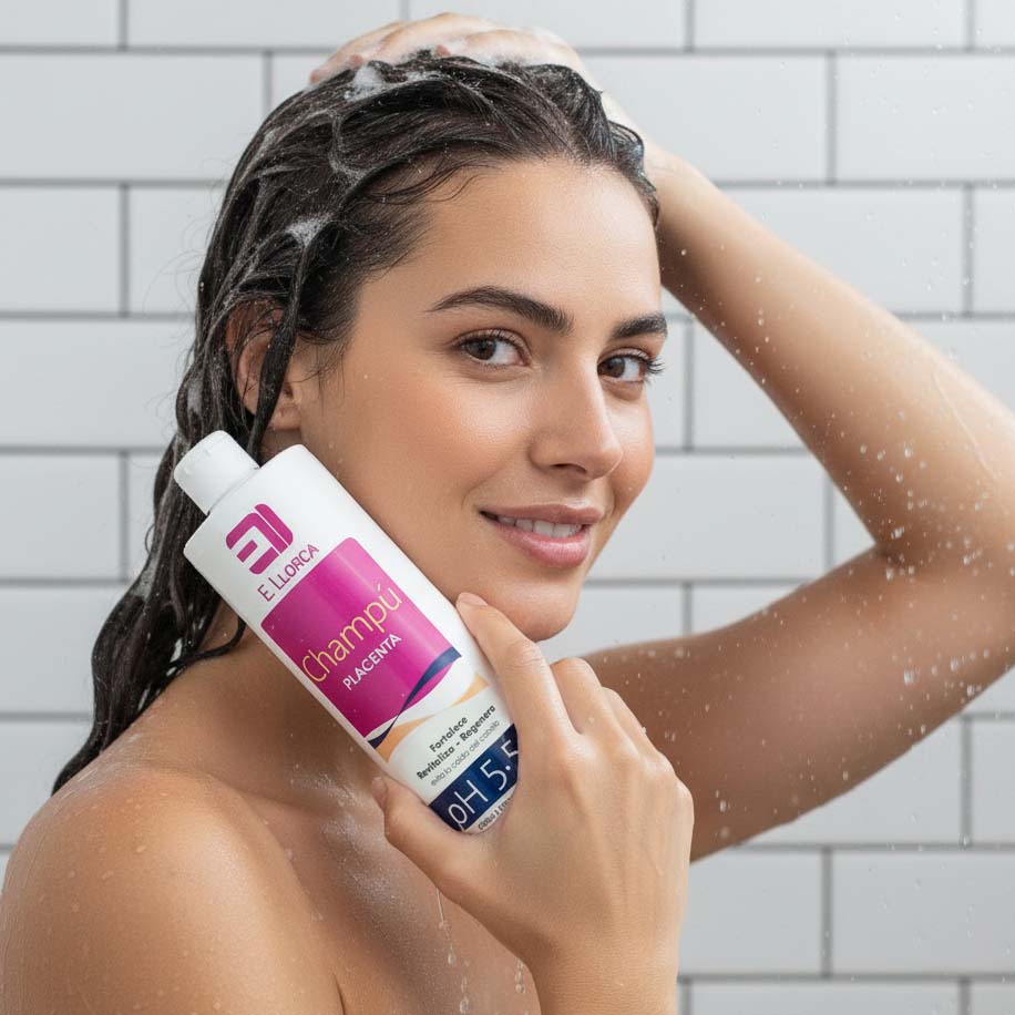 El Champú de placenta Elisabeth Llorca pH 5.5 regula la caspa, la grasa y la seborrea y además evita la caída del cabello.
